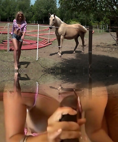 Katrin Tequila's Horny Russian Pussy Gets Cummed on by Brown Horse During Crazy Gangbang