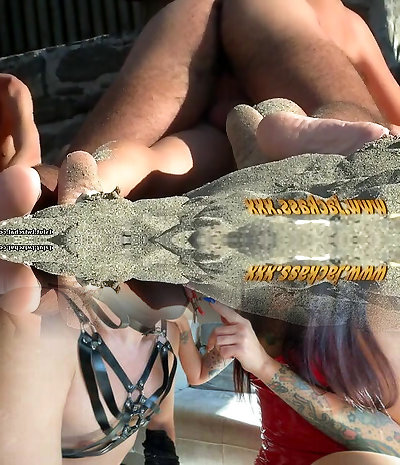 Lesbian beach eating out in sand