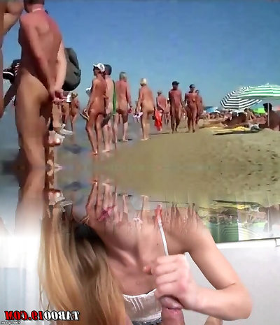 Couple's Blowjob Session on the Beach: Hot Amateur Nudist Couple beach Voyeur SpyHD Video
