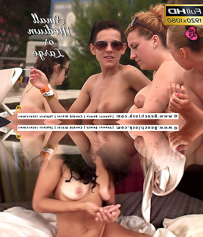 Four Sexy Nudes Relaxing on the Sand: Blonde, Brunette, Redhead, Small Tits