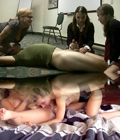 Teacher and Girls Give Joint Handjob