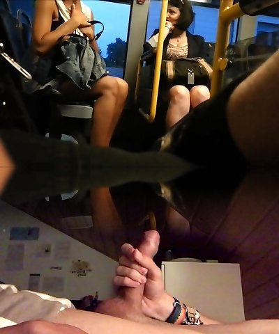 Sexy Busty Teacher Masturbates with Massive Cock in Public Bus