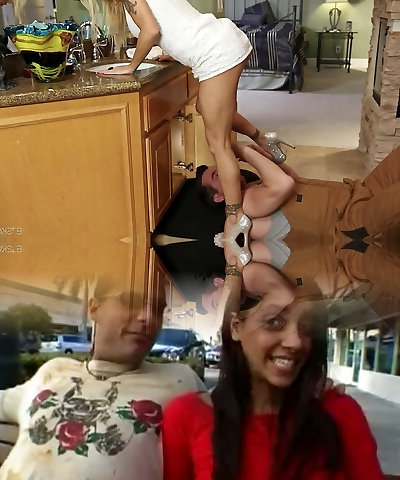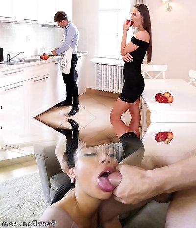 Kristy's Juicy Apple Fuck Fest: Two Guys One Brunette with High Heels Gets Dirty on Kitchen Counter