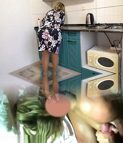 Young Stepson Can't Resist His Sexy Older Stepmom in the Kitchen
