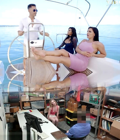 Pink Dress Rim Job Threesome on Boat: Gold Digger Honey Demon Blowjob Fiesta!